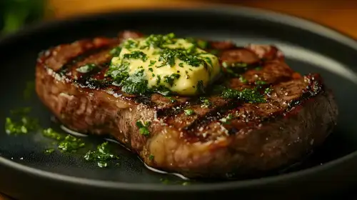 Voor een mooie rosé garing bak je de biefstuk ongeveer 2–3 minuten per kant. Laat het vlees daarna 2 tot 3 minuten rusten, zodat de sappen zich goed kunnen verdelen en de biefstuk heerlijk mals blijft.