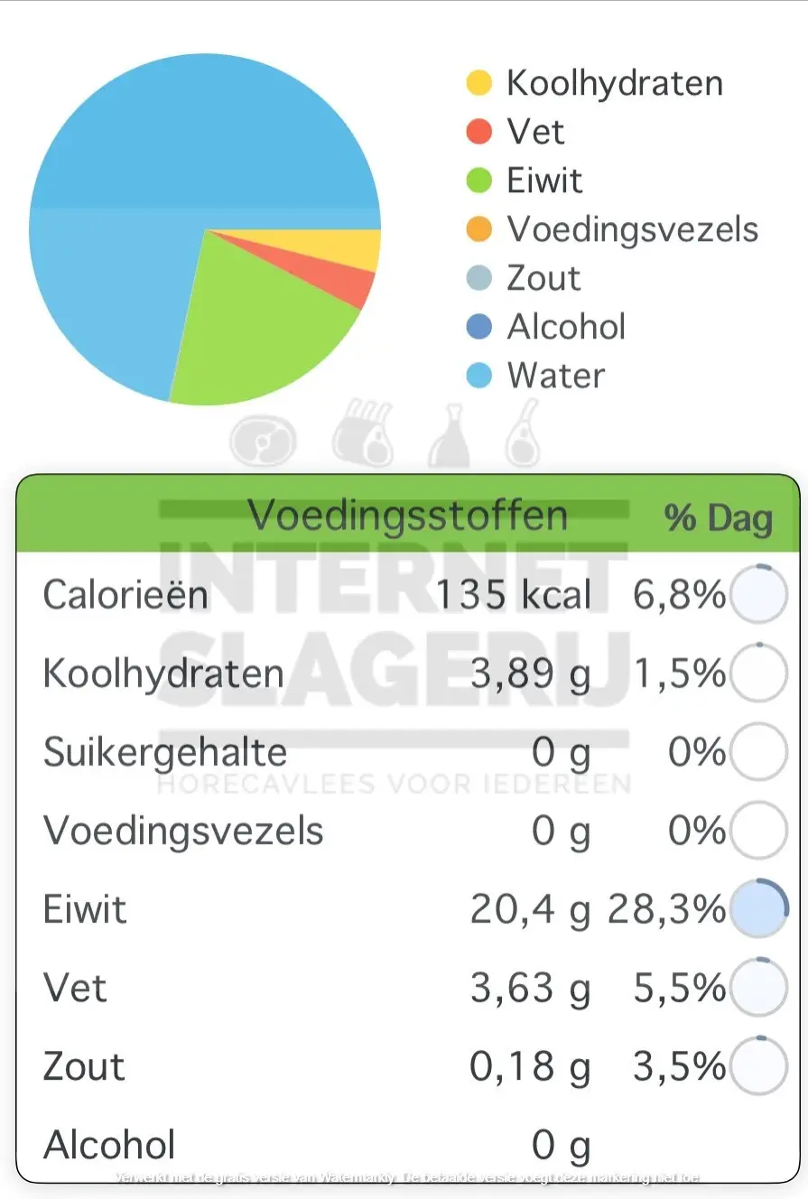 - Bewaaradvies: Maximaal 4°C. Geschikt om in te vriezen